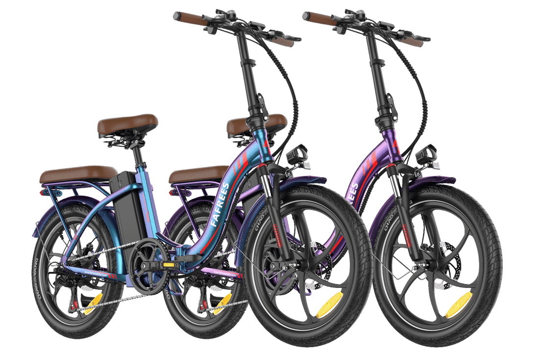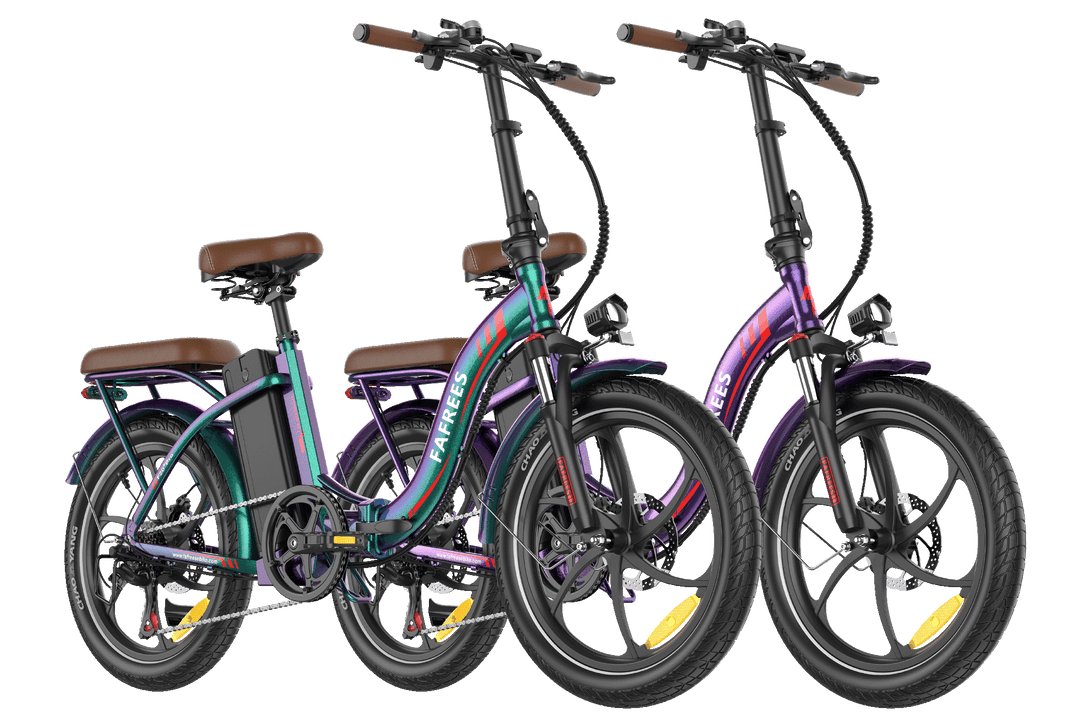 The F20+ Pro features a newly upgraded, integrated aluminum alloy frame that ensures strength and durability while remaining lightweight. Its compact, foldable design makes it easy to store and transport. Plus, with a stunning tri-color chameleon finish, the frame shifts between green, purple, and blue, adding a touch of personality and style to your ride.